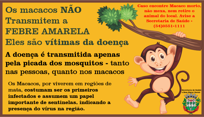 Diante do fato e da gravidade da doença, o município de Machadinho, por meio do setor de endemias da Secretaria Municipal de Saúde e Bem Estar Social, orienta a população sobre a necessidade de imunização por meio de vacina e demais orientações em caso de verificação de primatas mortos.