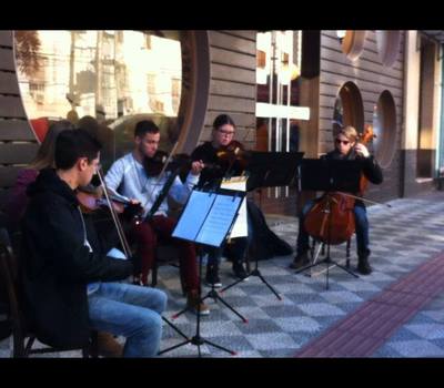 A Orquestra de Concertos de Erechim (OCE) comemorou neste mês seu 66º aniversário. Para celebrar a data, o grupo realiza no próximo domingo (19) um concerto no Centro Cultural 25 de Julho. As apresentações iniciam as 20h e a entrada é gratuita. Para divulgar o concerto, músicos da OCE estão realizando apresentações nas ruas de Erechim. Na tarde de ontem (13), eles se apresentaram na rua Itália e foram aplaudidos pelo público que passava pelo local e parava para assistir a apresentação. Assista ao vídeo da pequena apresentação clicando aqui.