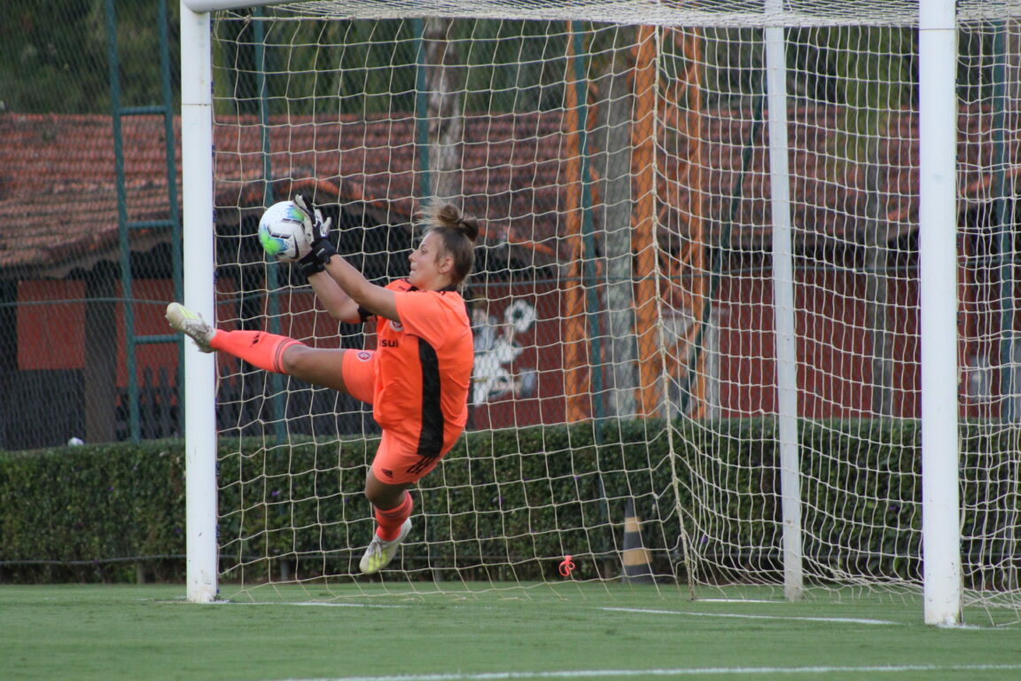As atletas dominaram o primeiro tempo desde o apito inicial. A pressão colorada veio através da troca de passes entre o plantel vermelho. Com boas chances pelas pontas, Eduarda, Bia e Mileninha buscaram tabelar na entrada da área. Sabendo dominar o meio-campo, o ataque adversário foi anulado pelo Clube do Povo. Um dos destaques da partida ficou para a goleira Gabi Barbieri e justamente das suas mãos começou a jogada que resultou no único gol da partida.