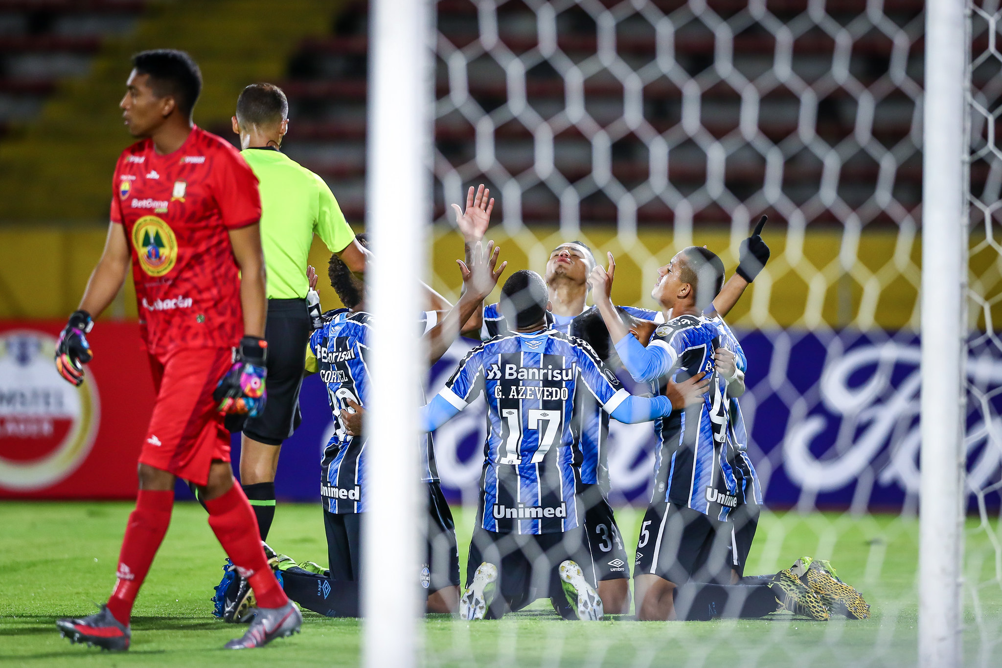Aos 28’ foi a equipe gaúcha que teve boa chance. Azevedo tocou para Ferreira, que invadiu a área e chuta. O goleiro Espinoza espalmou e o zagueiro Quina afastou. Aos 31’ saiu o gol do Ayacucho. Ardilles cruzou na área, Sosa tabelou com Quina que, sem marcação, chutou colocado, sem chances para o goleiro Brenno e abriu o placar. Mas não houve tempo para comemoração. No minuto seguinte o Grêmio atacou em velocidade, Ferreira passou por dois marcadores e de dentro da área chutou cruzado, no canto esquerdo de Espinoza, empatando o placar.