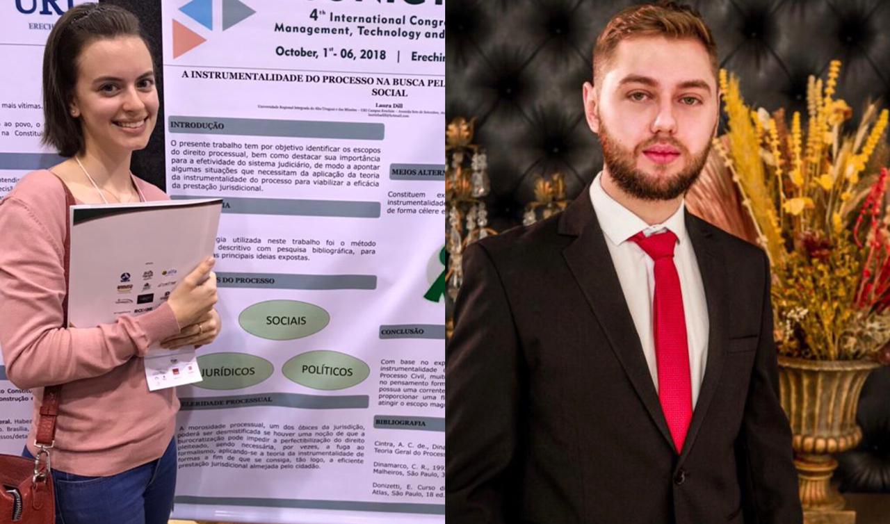 “A (im)possibilidade de conversão da prisão em flagrante em prisão preventiva ex officio à luz da jurisprudência do Superior Tribunal de Justiça” foi o trabalho apresentado pelo diplomado Leopoldo Bertolla Reisner e “O Estado de Coisas Inconstitucional e o declínio da função ressocializadora da sanção penal” foi o trabalho desenvolvido e apresentado pela acadêmica Laura Dill.