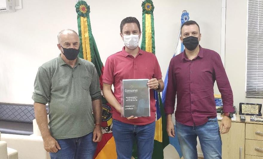 O prefeito de Barra do Rio Azul, Marcelo Arruda, e o secretário municipal de Meio Ambiente, Leocir Feranti, receberam o projeto do diretor da empresa, Daniel André Dezordi.
