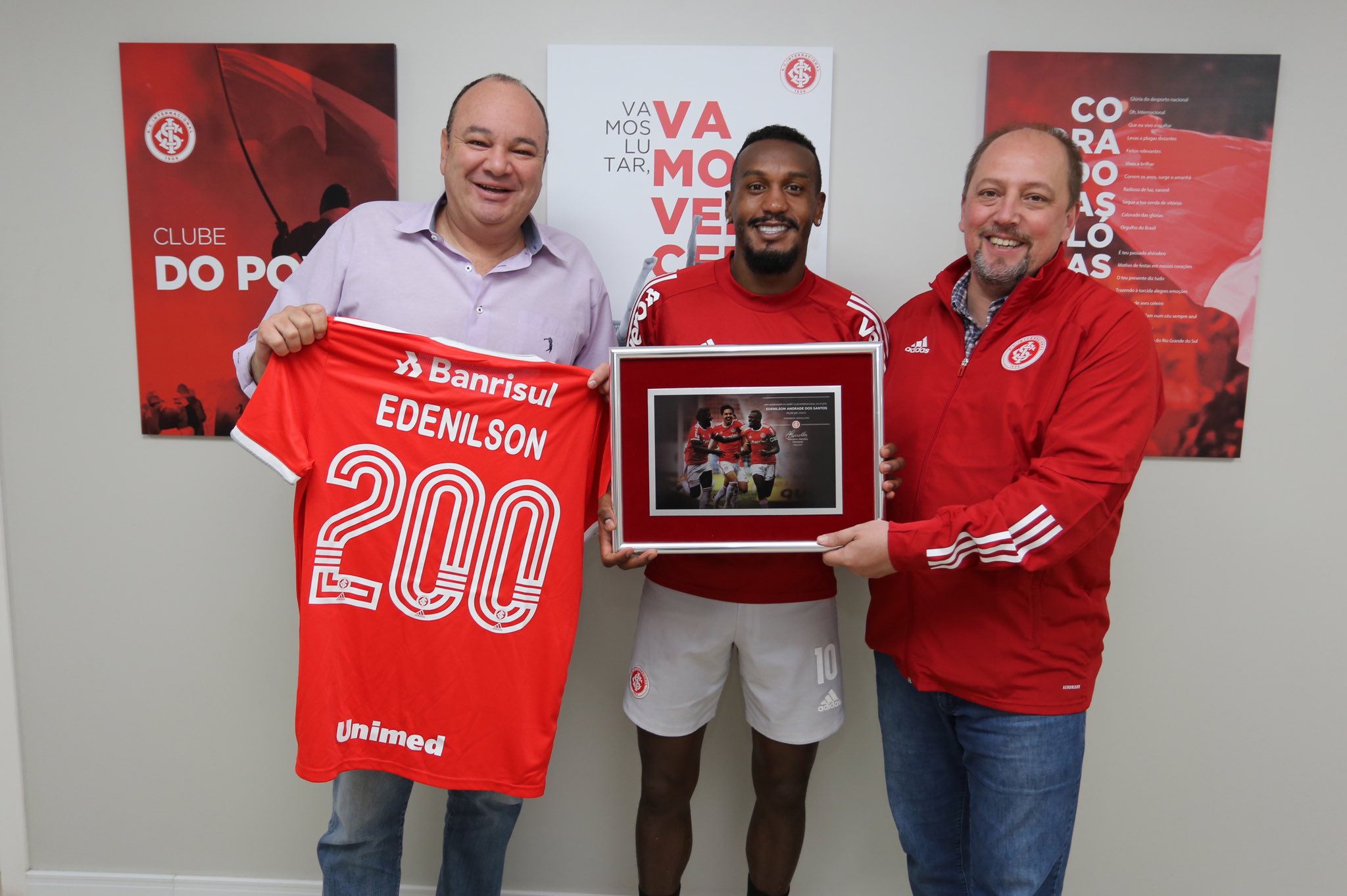 Na segunda-feira (30), o Internacional prestigiou quatro nomes de seu plantel que atingiram marcas importantes vestindo a camisa do clube. Edenilson, que está em Porto Alegre desde 2017, recebeu junto com Rodrigo Moledo, placa e camisa comemorativas por 200 jogos frente ao Colorado. Patrick, com 150 partidas e Lindoso 100, também receberam homenagens.