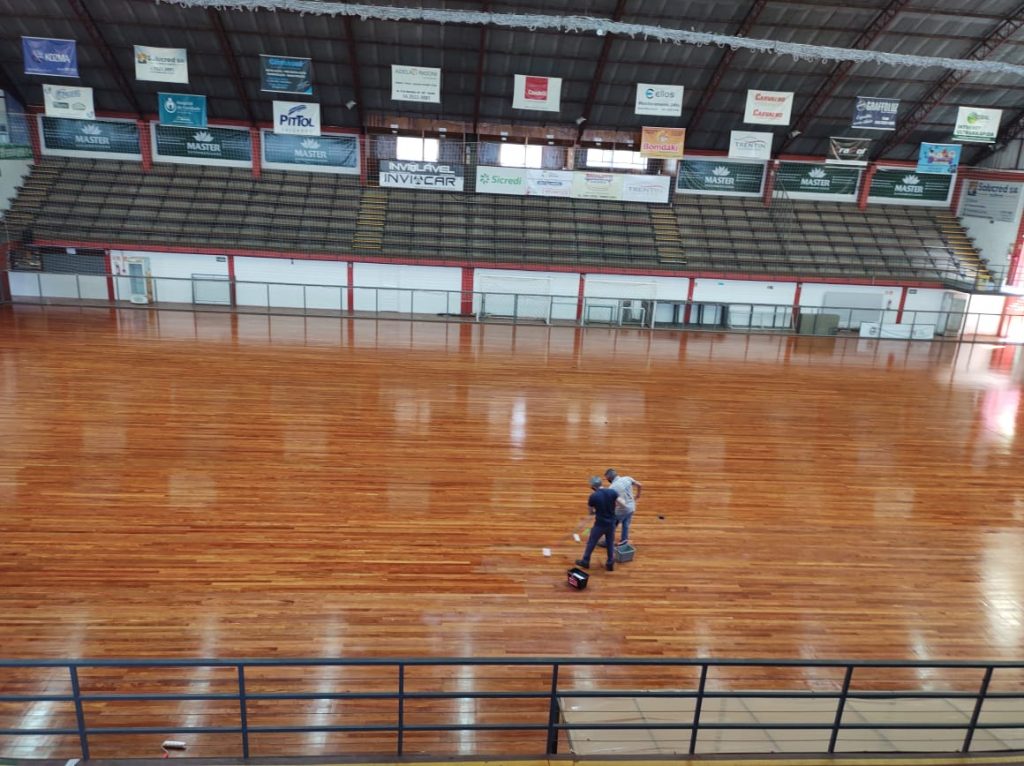Foram realizadas pinturas em suas goleiras, bem como nas paredes internas de todo o ginásio de Esportes.
