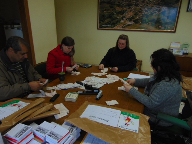 No dia 6 de junho, foi iniciada a separação e contagem das notas fiscais. A Escola Pedro Cecconelo participou com oito envelopes, Aurélio Castelli participou com sete envelopes, Anjinho da Guarda com um envelope e Escola Estadual Maria Nacimento Giacomazzi participou com sete envelopes.