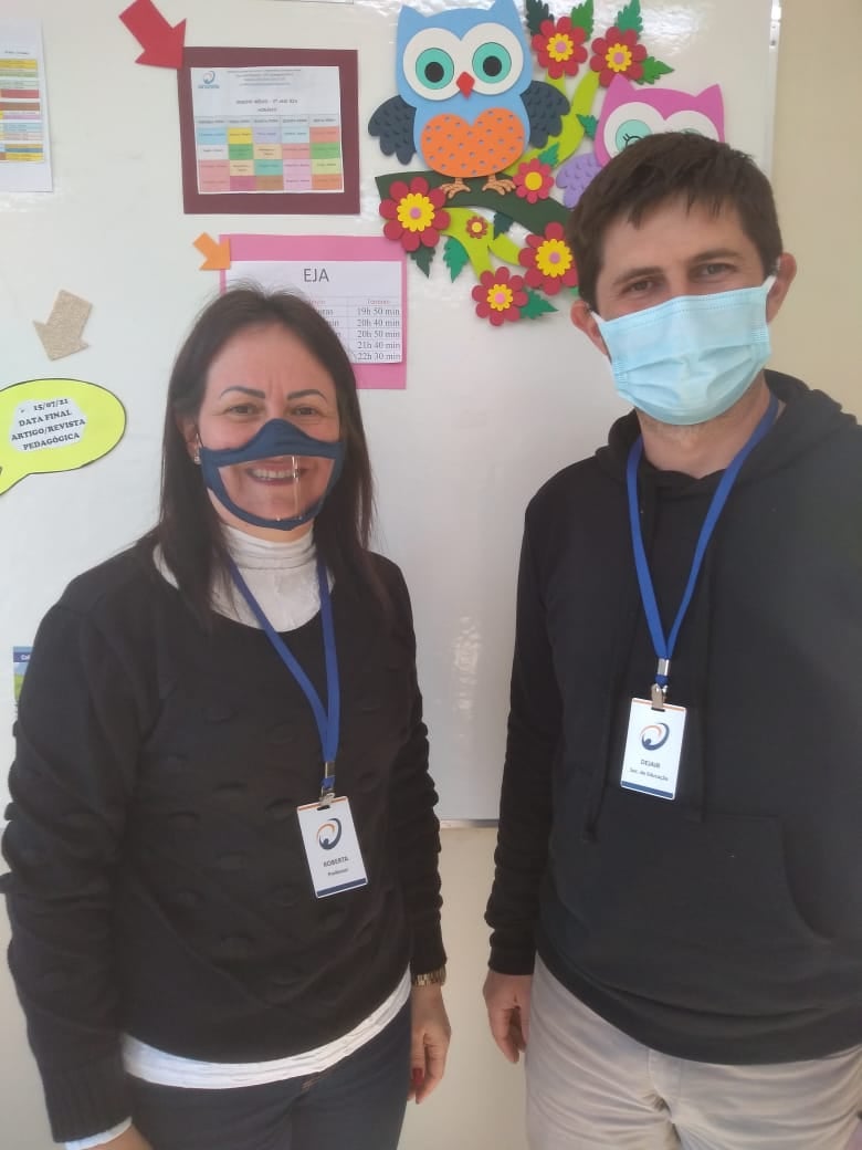A Secretaria de Educação de Ipiranga do Sul forneceu máscaras faciais transparentes para os professores da rede municipal de ensino, da Escola Municipal Dom João Becker.
