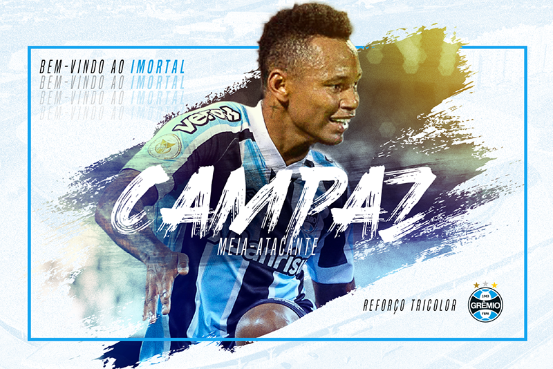 O Grêmio confirmou a contratação do meia-atacante colombiano, Jaminton Campaz, 21 anos, junto ao Deportes Tolima, de Ibagué/COL. O atleta assina vínculo com o Clube até dezembro de 2025.