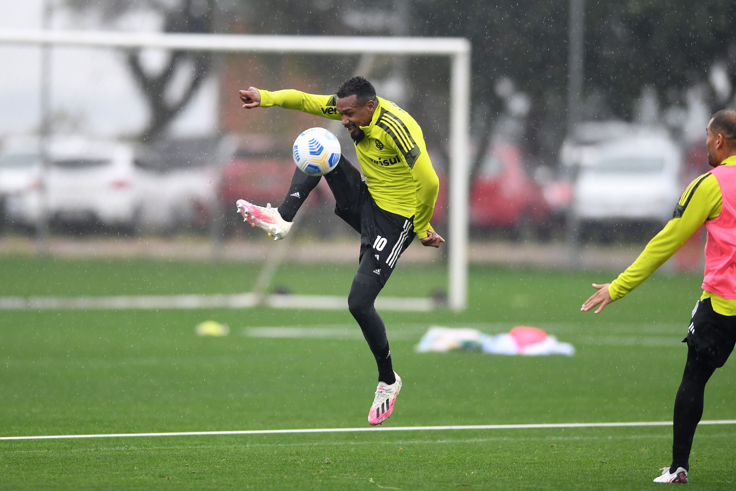 Nos trabalhos desta quinta, a comissão técnica comandada pelo treinador Diego Aguirre realizou exercícios físicos, técnicos e táticos no gramado do CT Parque Gigante. O uruguaio orientou um treinamento coletivo, ajustando detalhes do time que entrará em campo para enfrentar o Atlético-GO.
