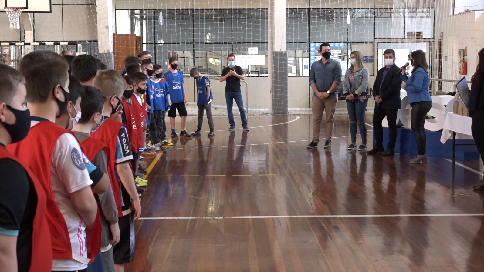 Na manhã desta quarta-feira feira (01), foi lançado oficialmente o projeto de Iniciação Esportiva Gratuita do Sesc Erechim, totalmente custeado pelo Sesc com suporte do Sesc Rio Grande do Sul, por meio da destinação do material e apoio necessário para o desenvolvimento das atividades. Em uma breve formalidade, foi entregue kit com as camisetas do projeto para as crianças presentes e também contou com a participação de autoridades, convidados, alunos, colaboradores e a imprensa. Antes do jogo, uma estudante foi convidada para dar o chute simbólico.