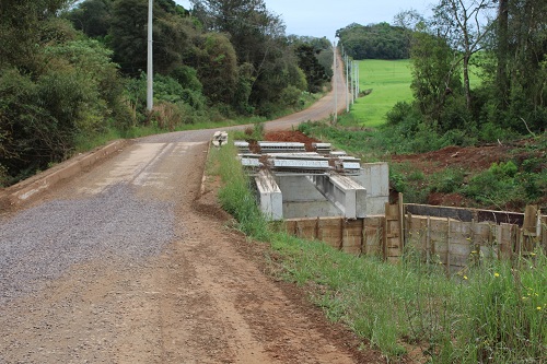 As obras de ampliação da ponte de acesso à comunidade de Salgado Filho, em Ipiranga do Sul, foram retomadas, nesta semana. Segundo a prefeitura, as vigas que darão sustentação à nova ponte já foram colocadas no local.