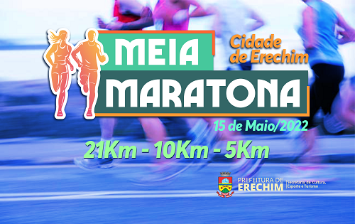 A Secretaria de Cultura, Esporte e Turismo confirma para o dia 15 de maio de 2022, a primeira edição da Meia Maratona Cidade de Erechim.