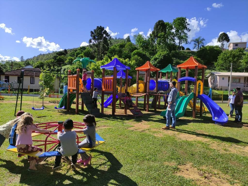 A administração municipal de Barra do Rio Azul inaugurou, na terça-feira (19), a revitalização da Praça Florida com a reforma dos brinquedos, que estavam em boas condições, e adquiriu um novo playground de 150 metros quadrados para as crianças. A cerimônia contou com a presença do prefeito, Marcelo Arruda, o vice-prefeito, Maximino Basso, secretária de Desenvolvimento e Turismo, Luciana Ongaratto Pan, professoras municipais e as crianças da Educação Infantil.