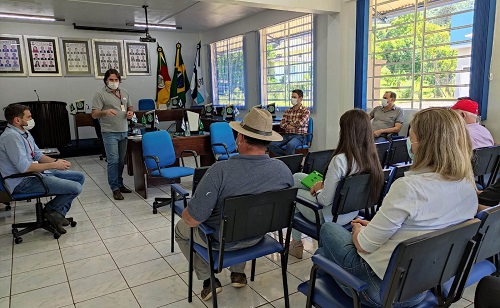 Estiveram presentes na reunião, o prefeito, Marcelo Arruda, vice-prefeito, Maximino Basso, vereadores, presidente do Sindicato Rural e Coordenador da Secretaria da Agricultura, Carlos Zamadei, o gerente da Cresol, Júlio pan, a representante do Sicredi, Larissa Boni, secretários municipais e o credenciado da RGE, Agropecuária 3A.