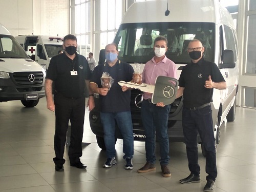 O prefeito de Ipiranga do Sul, Marco Antônio Sana, e o vice-prefeito Fabiano Luiz Klein, receberam, na semana passada, as chaves do novo veículo adquirido para a Saúde do município (van Sprinter, Mercedes-Benz, 0 km, de 16 lugares). O investimento foi de R$ 188.279,00 com recursos da Saúde.