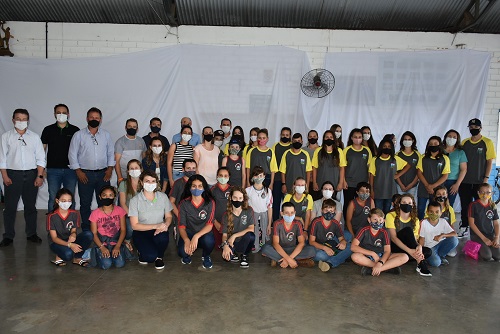 Estavam presentes no ato os pais dos estudantes, o prefeito, Valdemar Cibulski, além de outras autoridades municipais e representantes da Sicredi, inclusive o presidente da cooperativa Sicredi UniEstados, Adelar Parmeggiani, a fim de prestigiar o trabalho dos estudantes.