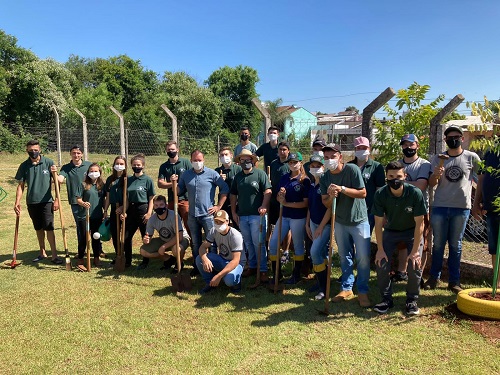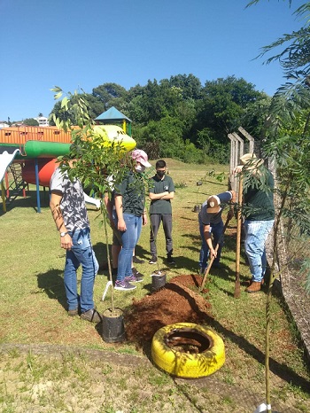 A turma 32 do Colégio Agrícola Estadual Ângelo Emílio Grande realizou na última quinta-feira (2), uma atividade de plantio de árvores da Escola Municipal de Ensino Infantil Olivo Castelli e no Parque Municipal das Águas em Getúlio Vargas, em parceria com a Secretaria do Meio Ambiente de Getúlio Vargas.