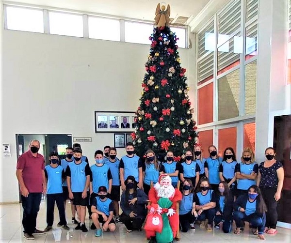 O que é a prefeitura? Quais as suas funções e importância? Esse foi o objetivo da visita, na tarde de segunda (6), dos alunos do 6º, 7º, 8º e 9º da Escola Municipal Mario Quintana. Os estudantes foram recebidos pelo prefeito de Cruzaltense, Joarez Luiz Sandri, que conversou em seu gabinete sobre as ações do Poder Executivo. Em seguida, registraram a visita em frente à Árvore Natalina, que fica dentro da sede da prefeitura.