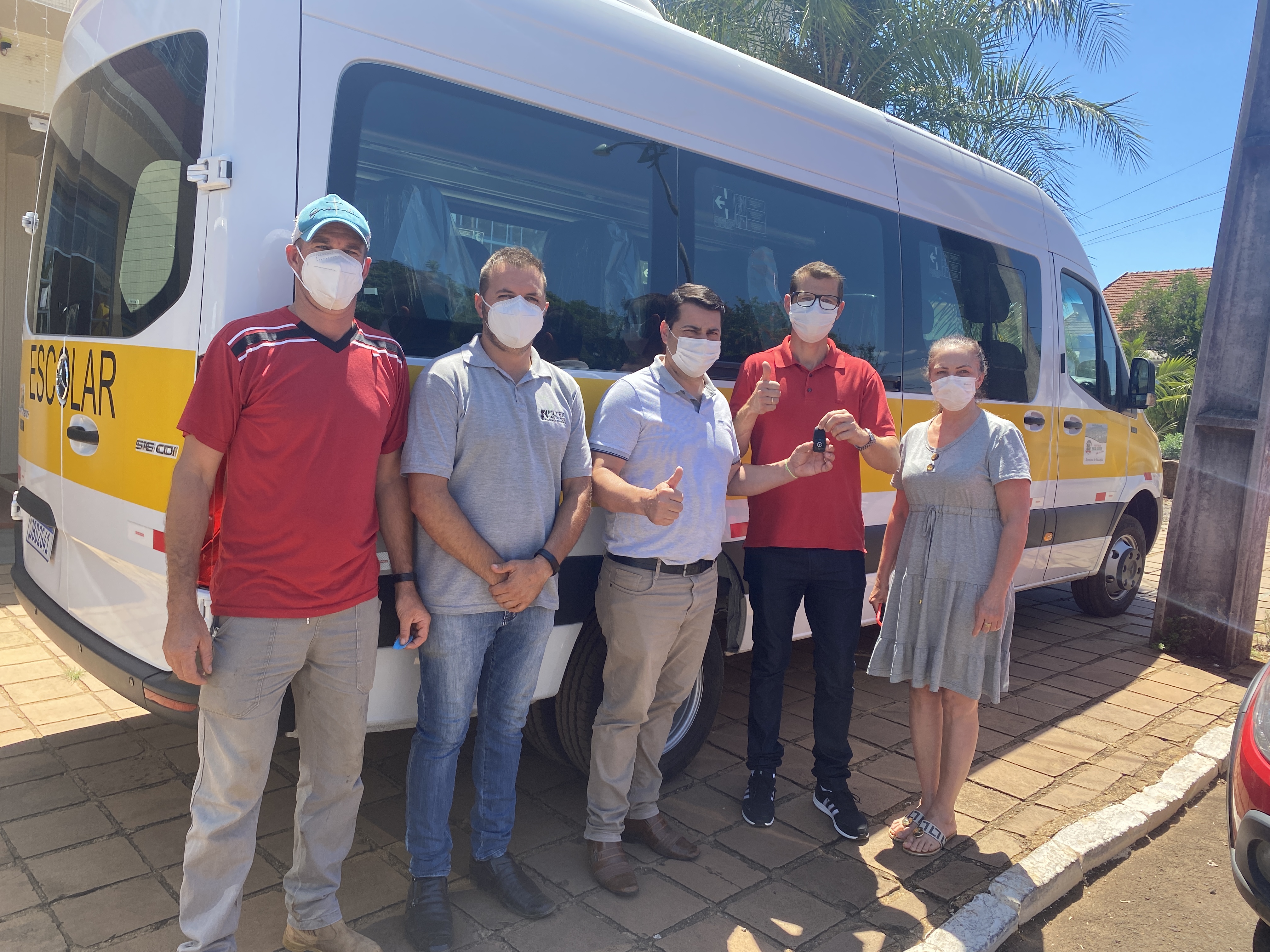 Na lista de itens entregues está inclusa a van Mercedes Benz Sprinter 516 CDI, zero quilômetro com 17+1 lugares, adquirida pelo valor de R$ 275.000,00 com recursos do Fundo Nacional de Desenvolvimento da Educação (FUNDEB).