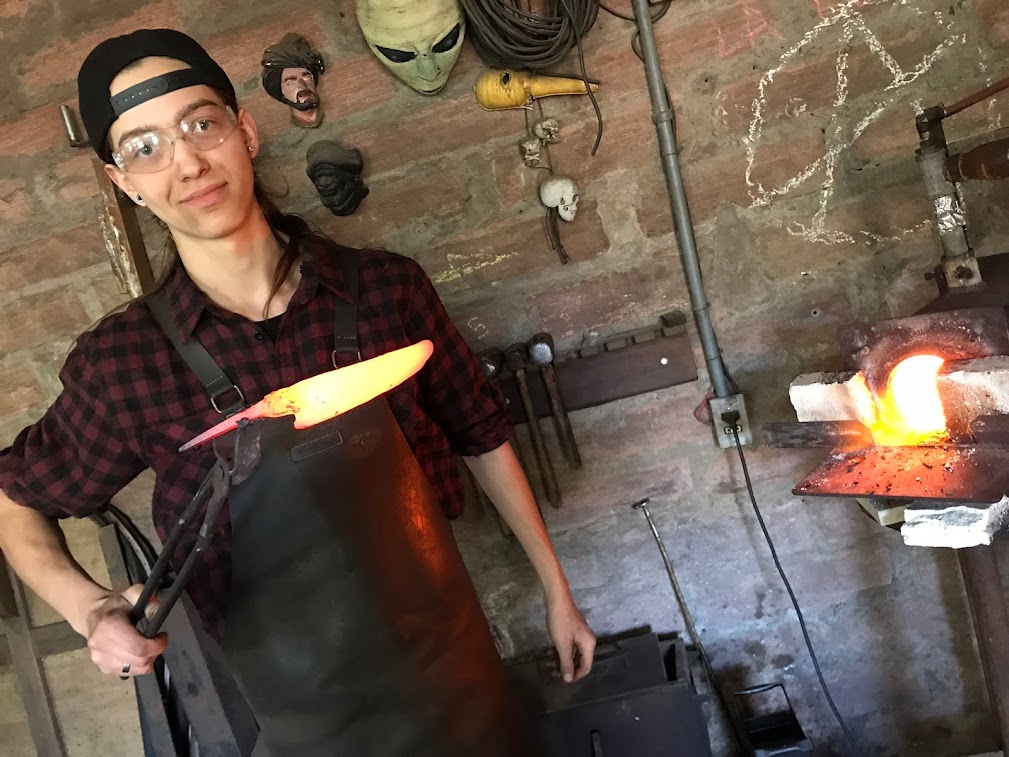 A partir daí, passou meses estudando com afinco todo o processo de fabricação, desde a produção do aço até os acabamentos mais refinados. “Minha família tinha oficina de chapeação automotiva, então, para desespero de minha mãe, comecei a pegar emprestado algumas ferramentas da oficina, como soprador térmico, alicate, marreta, e com um pouco de lenha, que achava na rua e um pouco que conseguia em uma pizzaria, fazia fogo para forjar. Forjava qualquer material. Foi um ótimo período para experimentações e expansão da criatividade”, comenta.