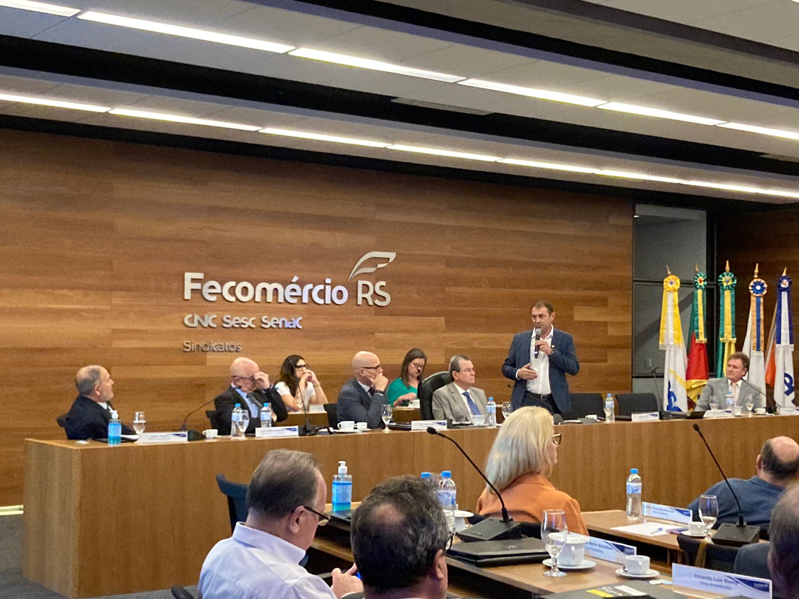 O parlamentar destacou à diretoria da Fecomércio-RS que a coragem dos atuais parlamentares quebraram o paradigma das privatizações, além de consolidar a reforma administrativa e reorganizar o sistema tributário gaúcho – temas que enfrentavam históricas resistências sindicais e coorporativas. “O Estado precisava enfrentar sua verdade fiscal e encontrou respaldo na coragem dos parlamentares da base do governo que, como eu, assumiram o mandato comprometidos em mudar a precária situação do Rio Grande do Sul. As fontes alternativas de receita haviam se esgotado, os saques dos depósitos judiciais e do Caixa Único somaram R$ 19 bilhões, o passivo com precatórios chegou a marca de R$ 15,8 bilhões, a dívida consolidada fechou 2018 em R$ 73,3 bilhões e a dívida com a União alcançou R$ 63 bilhões. Mas, enfim, mudamos essa realidade e o RS está em outro momento econômico”, salientou o parlamentar.