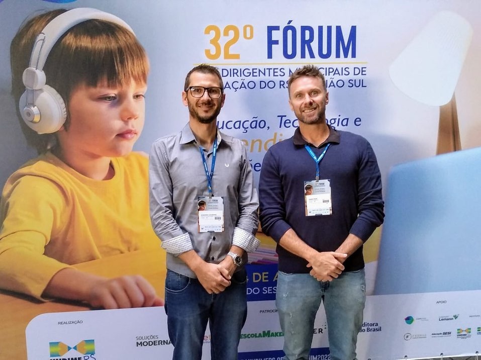 O secretário de Educação de Erval Grande, Alessandro Serafini, e o diretor da Escola Municipal de Ensino Fundamental Pinhalzinho, Cassiano Macari, participaram do 32º Fórum dos Dirigentes Municipais do RS e Região Sul (UNDIME), realizado entre os dias 13 e 14 de abril, em Porto Alegre. Com a temática "Educação, Tecnologia e Aprendizagens: conexões necessárias”, o encontro contou com a participação de mais de mil pessoas da área de educação.