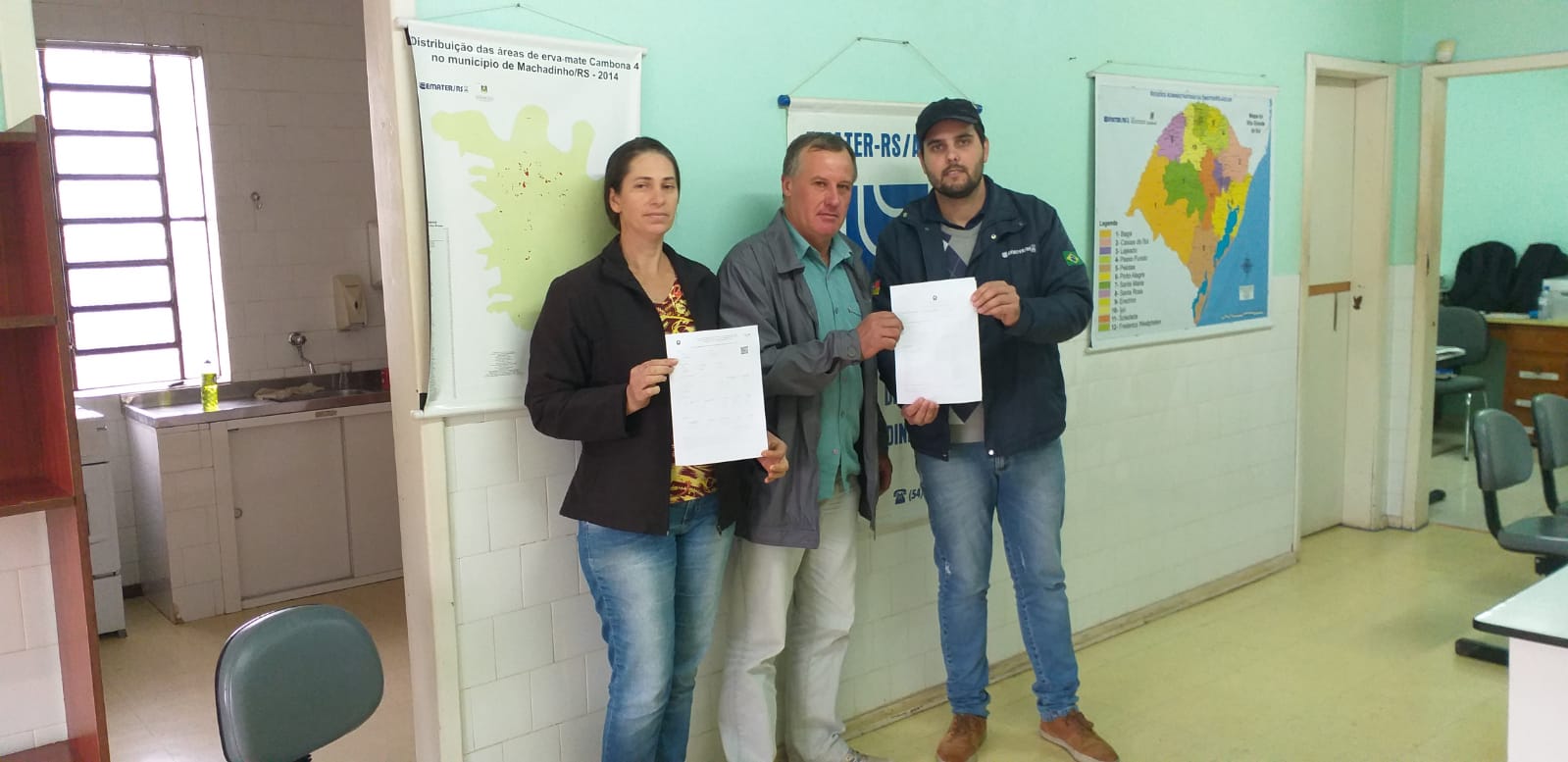 O escritório da Emater-RS/Ascar Machadinho, confeccionou, na última semana, o primeiro documento de Cadastro Nacional da Agricultura Familiar (CAF), documento que surge em substituição à antiga Declaração de Aptidão ao Programa Nacional de Fortalecimento da Agricultura Familiar (DAP).