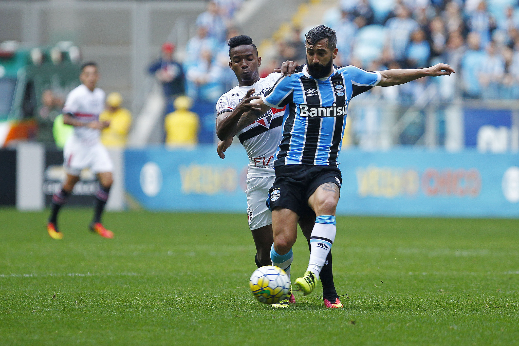 O Grêmio entrou em campo na tarde deste domingo, na Arena, para enfrentar o São Paulo, em jogo válido pela 16ª rodada do Campeonato Brasileiro. O Tricolor venceu pelo placar de 1 a 0.