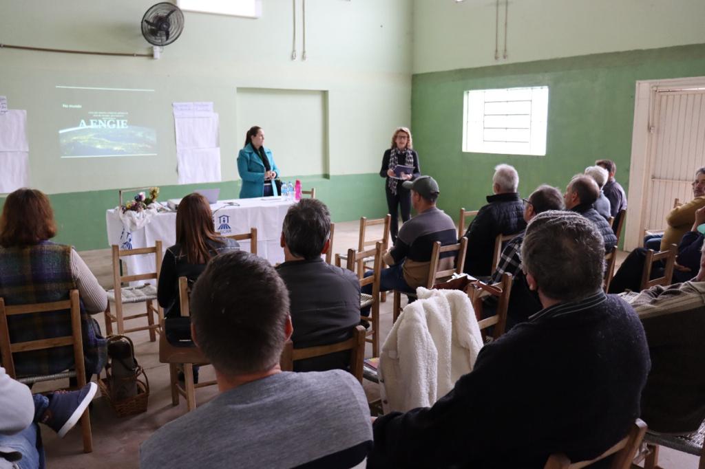 O turismo como oportunidade para os produtores rurais foi trabalhado pelo Programa de Educação Ambiental - PEA da Usina Hidrelétrica Machadinho, no município de Maximiliano de Almeida. A equipe realizou apoio no levantamento dos atrativos potenciais e existentes, diante do desafio: “O que eu posso oferecer em um roteiro turístico na nossa região”, com a construção de alternativas.