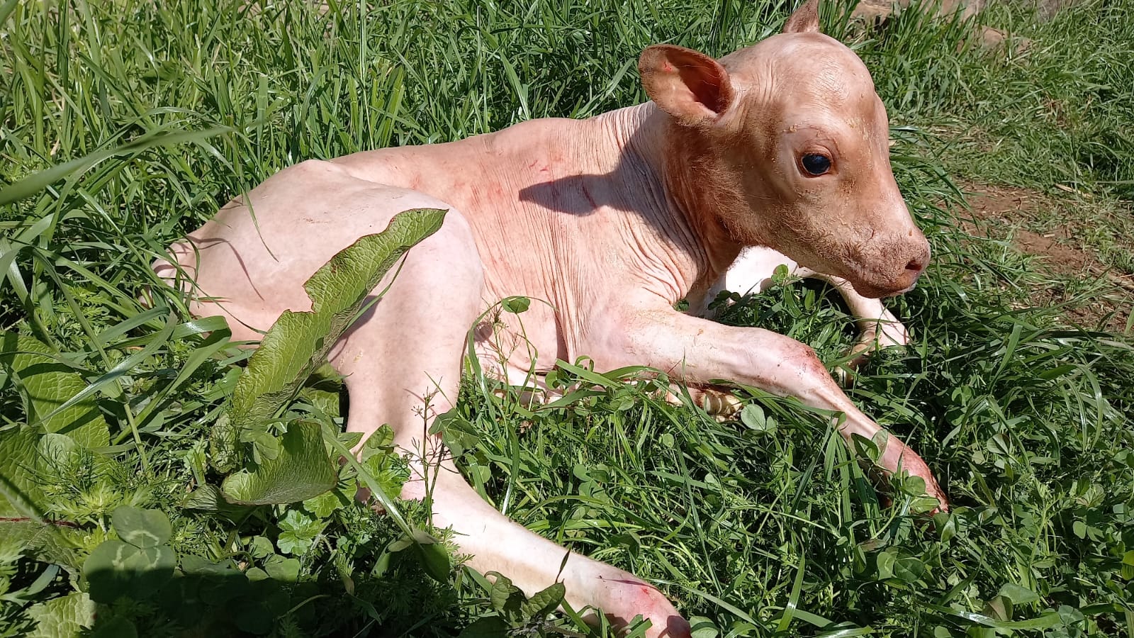 Uma bezerra com uma condição genética raríssima nasceu nesta quarta-feira (24), na comunidade de Lagoa Seca, no interior de Itatiba do Sul. A pequena bezerra nasceu completamente sem pelos, uma condição considerada tão rara que poucos estudos sobre o caso são encontrados.