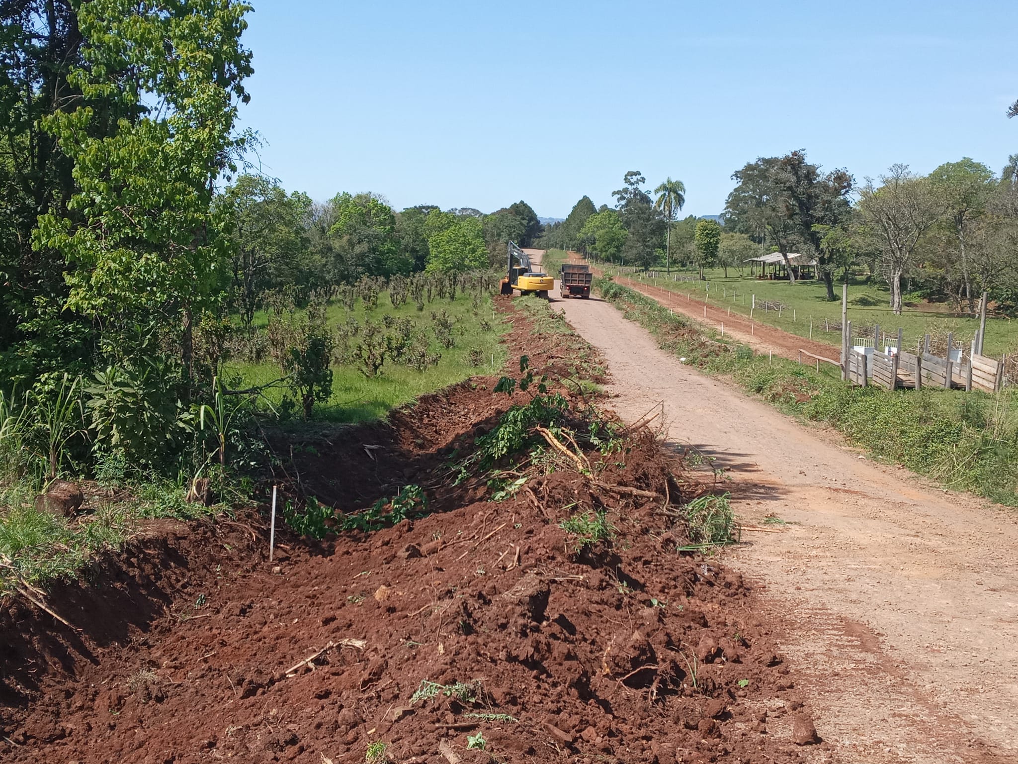 Nesse primeiro momento está sendo feita a limpeza e o alargamento da estrada, numa extensão de aproximadamente 1300 metros que pertencem ao Município de Itatiba do Sul.