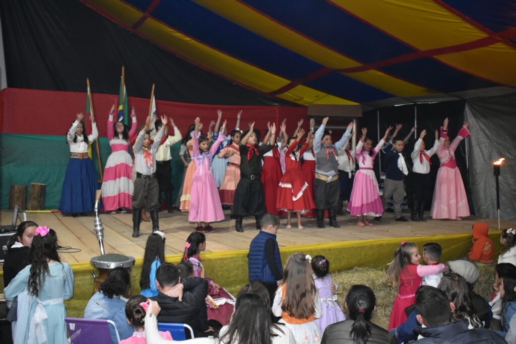 Na sexta-feira (16), as apresentações encheram de emoção e alegria o público presente. Com o espaço lotado, a noite foi marcada pela presença de alunos e familiares que acompanharam o momento de tradicionalismo. As Escolas Municipais EMEI Nair Bernadet Meassi, Prof. Anita Boneth Beltrame, Samuel Comachio e Prof. Itacyr Fontana, apresentaram seus números artísticos e alegraram a noite. A gastronomia teve feijoada beneficente ao Clube de Mães Renascer.