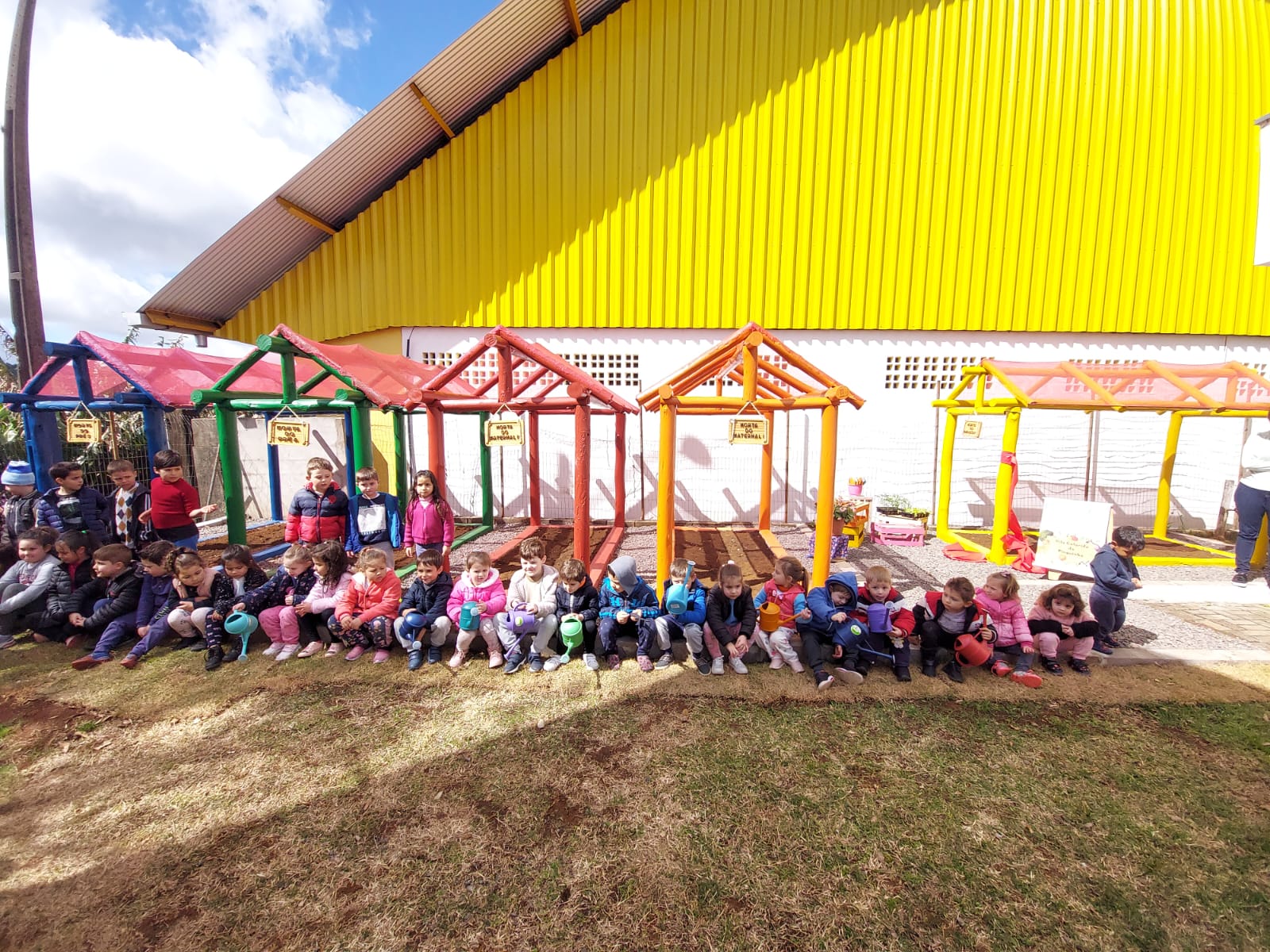 Os canteiros foram confeccionados em formato de casinhas com placas de identificação e cores diferenciadas para cada turma, tudo em madeira tratada, com intuito de serem duráveis e sustentáveis. Além dos canteiros, foram adquiridos vasos em cerâmica para o cultivo de temperos.