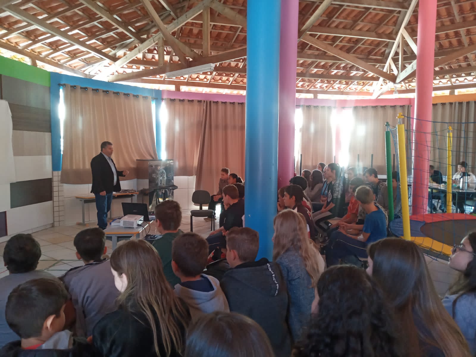 Com isso, no último dia 5, o assessor do Programa Educação Fiscal, Paulo Sanches, esteve presente na escola, visitando professores e alunos dos anos finais do Ensino Fundamental. Na oportunidade, falou sobre aspectos relativos ao programa, dando uma aula de gerência e cidadania.