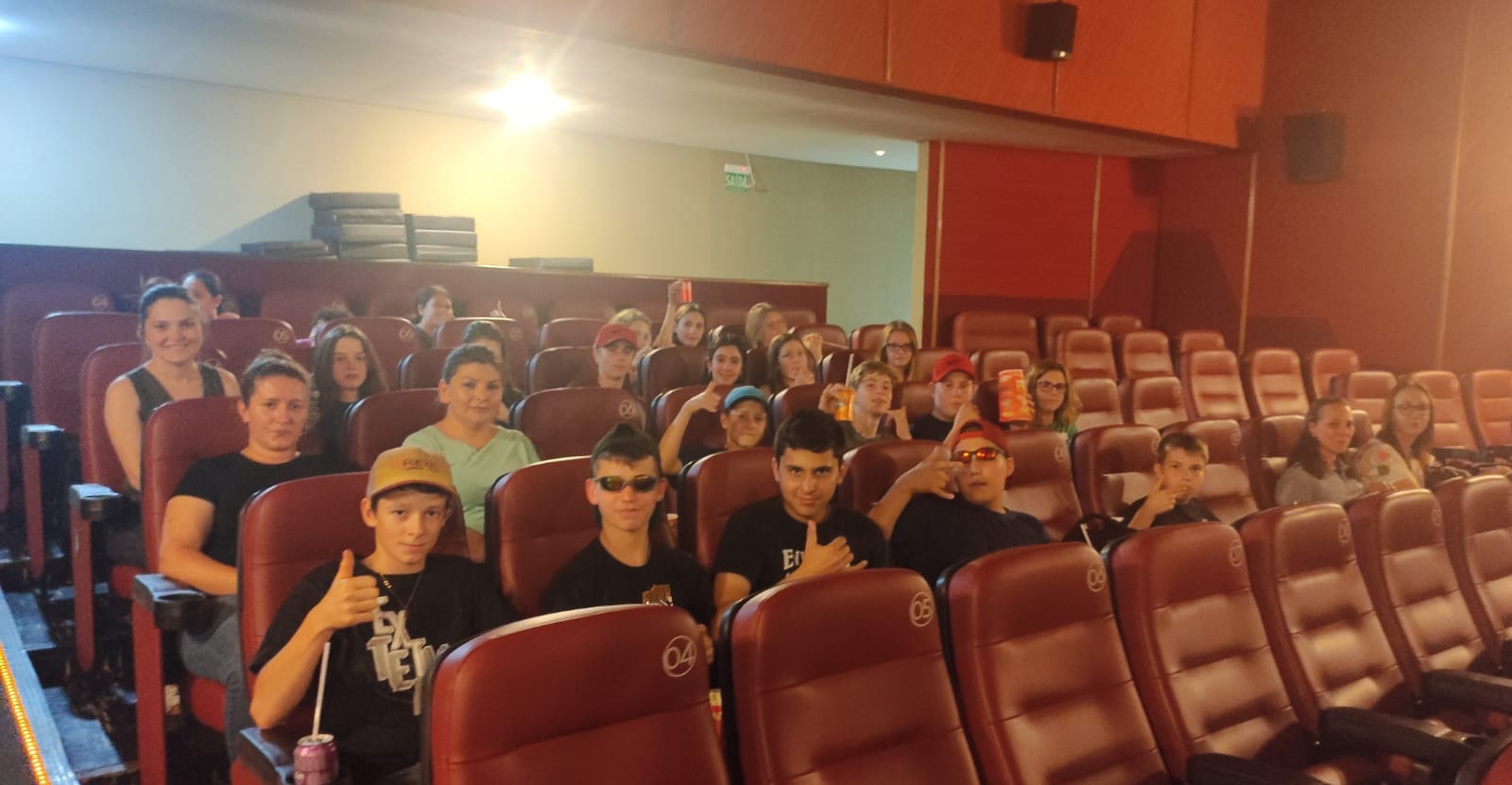 Na tarde de quarta-feira (26), os alunos do 6º ao 9º ano do Ensino Fundamental da Escola Municipal Jubaré de Barra do Rio Azul estiveram em Erechim para assistir a um filme. Os estudantes viram o filme: “As aventuras de Tadeo e a taboa de esmeralda”, no Cinema.
