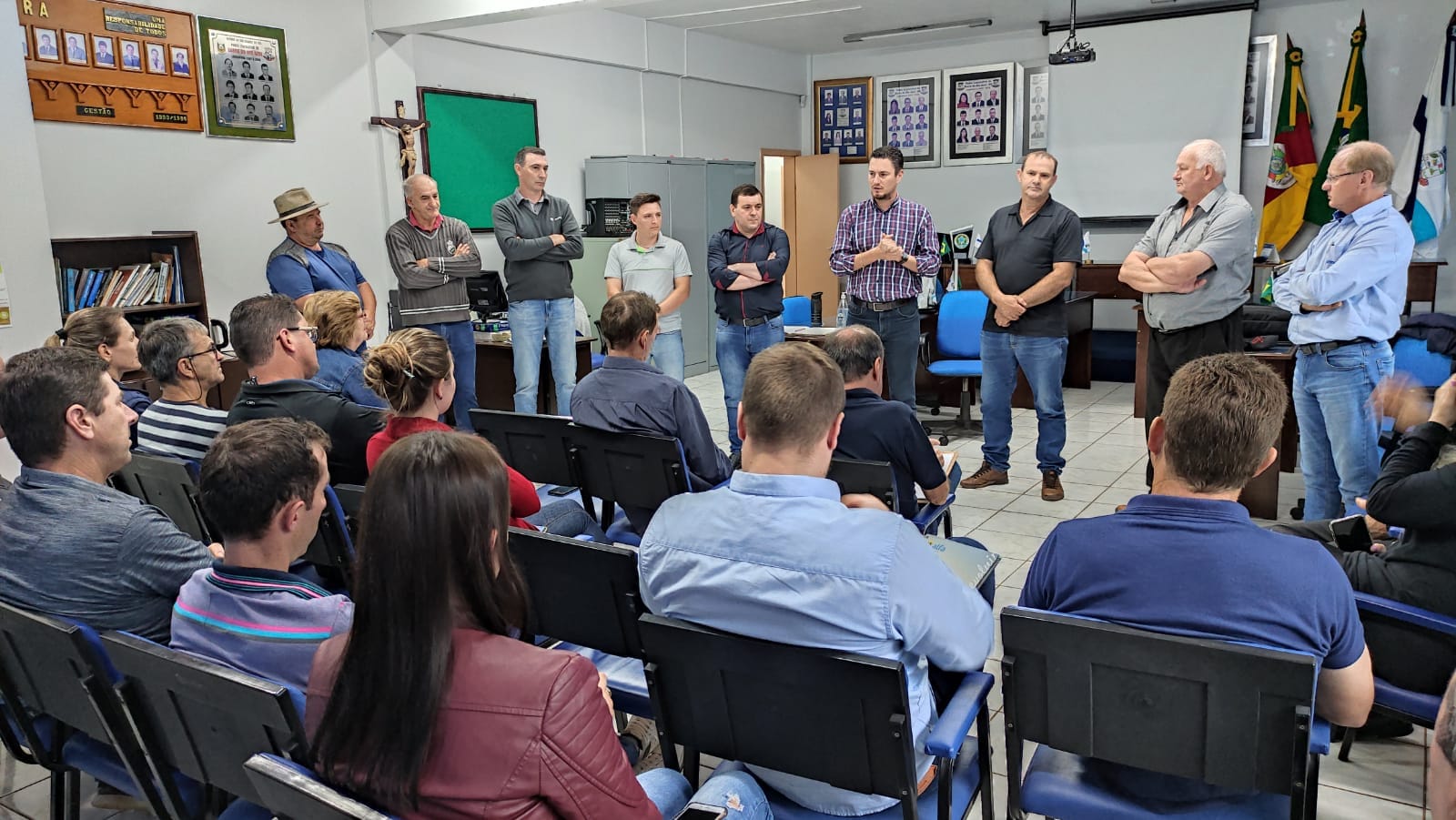 Nesta segunda-feira (31), estiveram reunidos os membros do Conselho da Agricultura, juntamente com o prefeito Marcelo Arruda, vice-prefeito, Maximino Basso, gerente regional da Emater, Gilberto Tonello, supervisor microrregional, Valdir Zonin, vereadores, representantes das instituições financeiras, das Cooperativas, secretários municipais, convidados e os membros da equipe do escritório municipal da Emater-RS/Ascar, Jair Francisco Zorzanello e Léia Hausen, para apreciar e aprovar o Plano Operativo 2023 do escritório de Barra do rio Azul. O encontro aconteceu na sala de reuniões da Câmara Municipal de Vereadores.