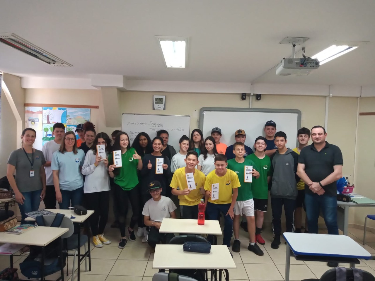 Entre as ações desenvolvidas, no dia 18 de novembro, na Escola Dom João Becker foram realizadas explanações pelo secretário de Finanças, Dinamar Rogério Folle, para estudantes do 8° Ano, sobre os tipos de impostos: ICMS, IPTU, IPVA, IPI e Imposto de Renda. Além de debate sobre os temas Educação Fiscal e Nota Fiscal Gaúcha.
