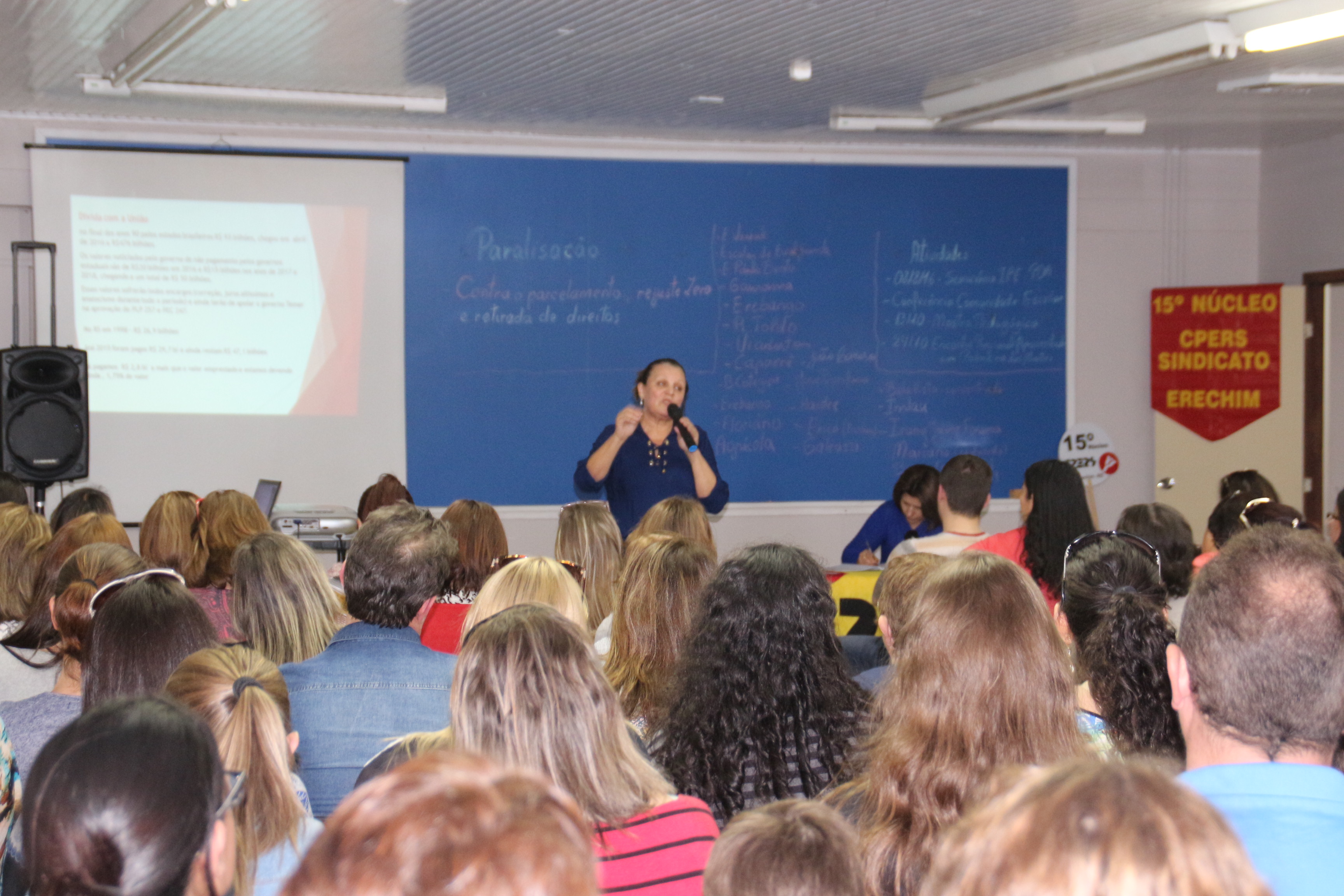 Professores se reuniram pela parte da tarde na sede do 15º Núcleo em um conselho regional ampliado. Em seguida fizeram uma caminhada até a esquina democrática segurando cartazes. “O mínimo que se pode exigir de um gestor é que ele pague o salário dos servidores em dia. O que se faz com R$ 650? Estudamos e trabalhamos muito para vivermos com dignidade e honrarmos com nossos compromissos. Como podemos desenvolver um trabalho de qualidade quando temos de conviver com o desrespeito e o terrorismo deste governo?”, questionou a presidente do CPERS, Helenir Aguiar Schürer.