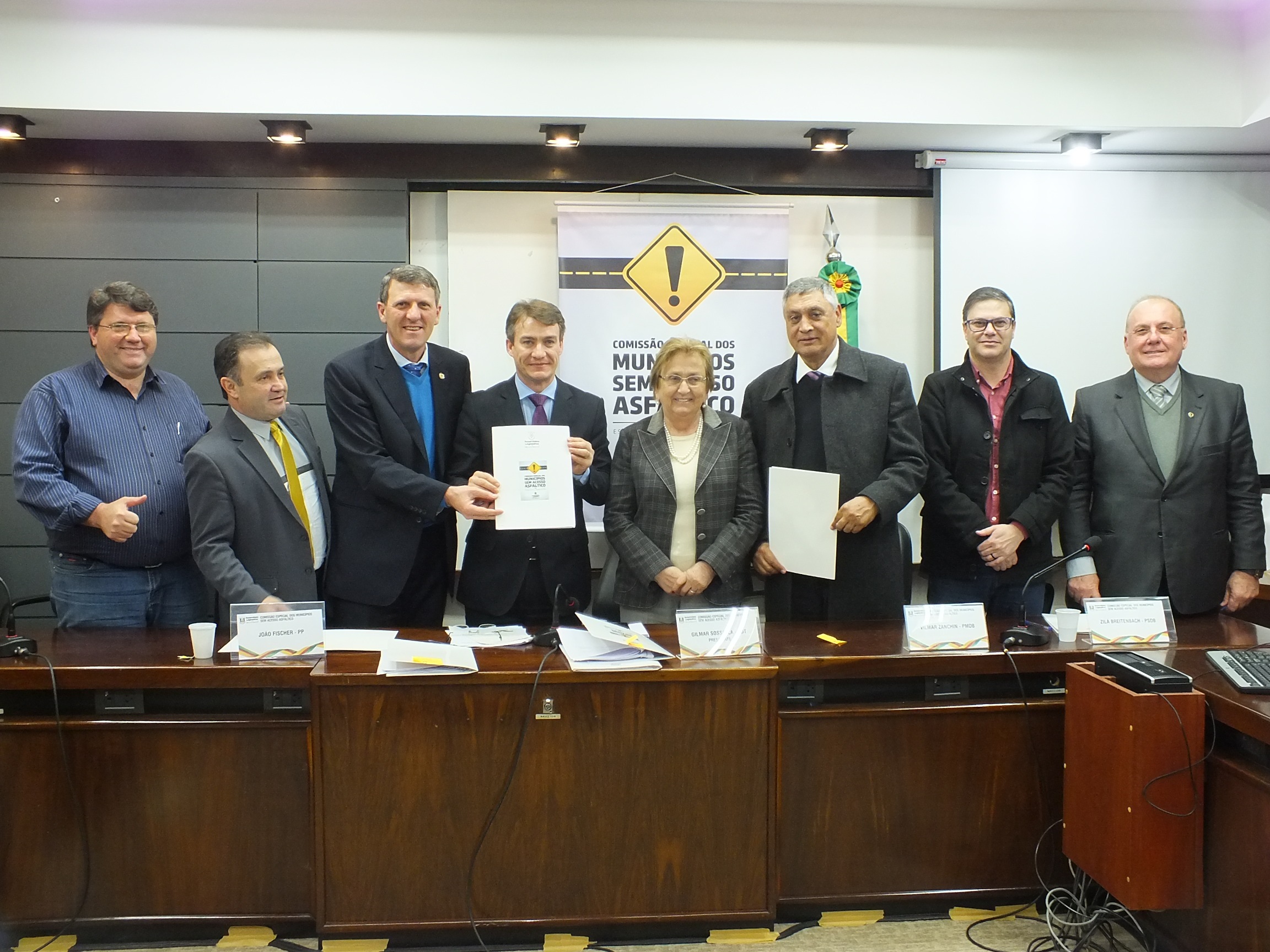 O relatório final da Comissão Especial dos Municípios Sem Acesso Asfáltico, presidida pelo deputado estadual Gilmar Sossella (PDT), foi aprovado por unanimidade na Assembleia Legislativa. O documento elaborado pelo relator Vilmar Zanchin (PMDB), traz dez recomendações que poderão auxiliar na viabilização das obras nas 74 cidades gaúchas que ainda lutam pelo acesso asfáltico. As propostas serão encaminhadas à presidente do parlamento gaúcho, Silvana Covatti (PP); ao governo do Estado; Secretaria Estadual dos Transportes; Departamento Autônomo de Estradas de Rodagem (Daer); aos ministérios da Fazenda e do Turismo, e aos deputados e senadores da bancada federal gaúcha.