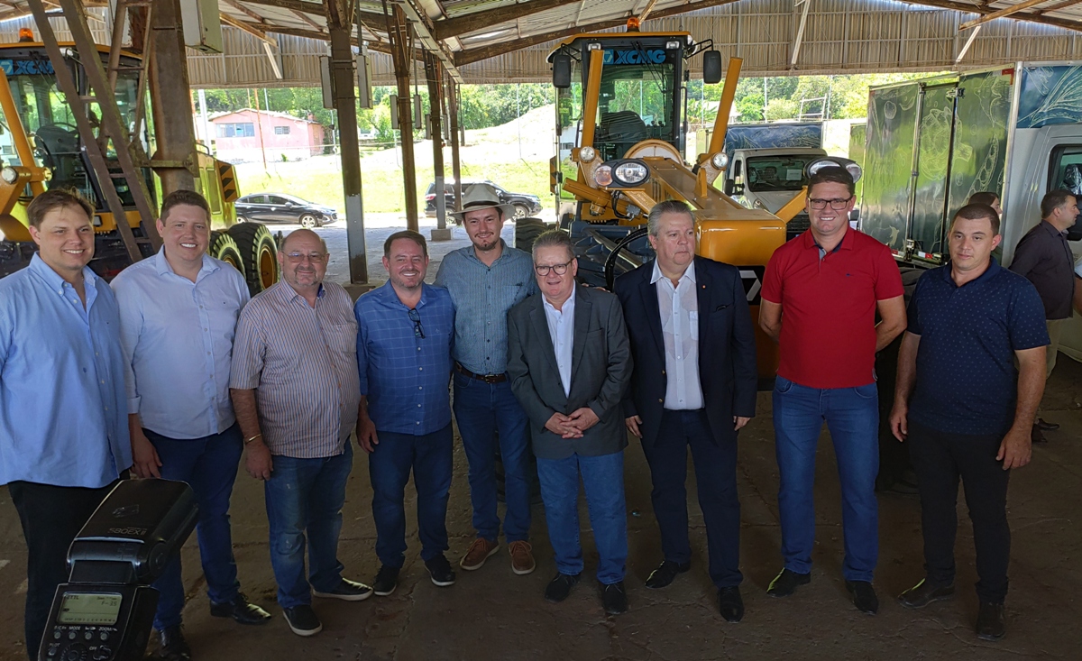 O prefeito Marcelo Arruda, acompanhado do secretário de Obras, Sidinei Zorzi e o operador Rafael Momoli, estiveram em Esteio na quinta-feira, 15, para receber do Governo Estadual uma motoniveladora. A indicação da máquina foi do deputado estadual eleito, Ronaldo Santini.