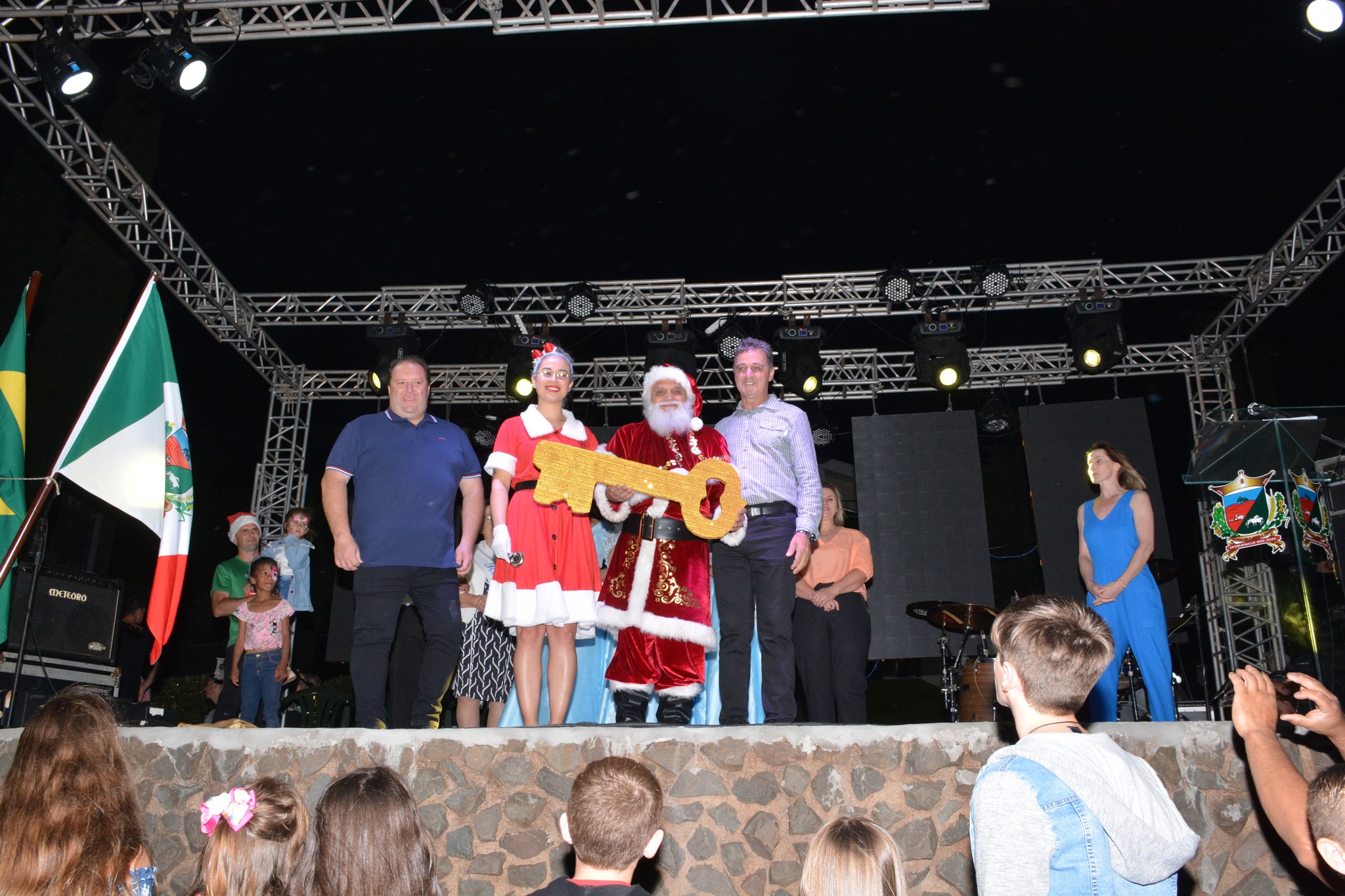 O prefeito de Ipiranga do Sul, Marco Antonio Sana, agradeceu o apoio da comunidade em mais um ano, destacou os avanços da administração pública em todas as áreas e desejou um Feliz Natal às famílias ipiranguenses. O prefeito entregou a chave da cidade ao Papai Noel.