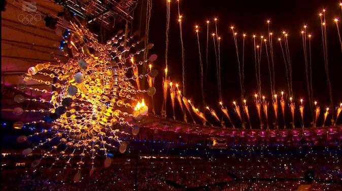 Logo após, o ex-maratonista brasileiro e medalhista de bronze nos Jogos Olímpicos de Atenas em 2004, Vanderlei Cordeiro de Lima ascendeu a pira olímpica, abrindo os jogos olímpicos.