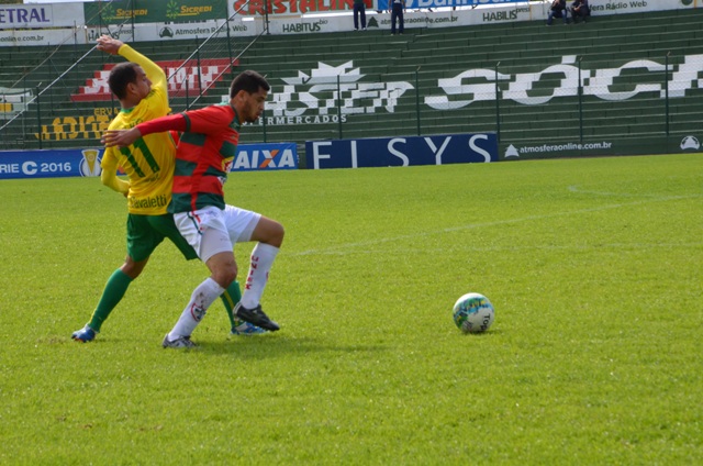 Intervalo de jogo no Colosso da Lagoa. O placar é de 0 a 0 entre Ypiranga e Portuguesa em um jogo bastante movimentado e equibrado entre dois fortes adversários da Série C do Campeonato Brasileiro. O espetáculo é bom para o torcedor, pois a bola rola bastante e os dois times demonstram que buscam a vitória na 12ª rodada da competição.