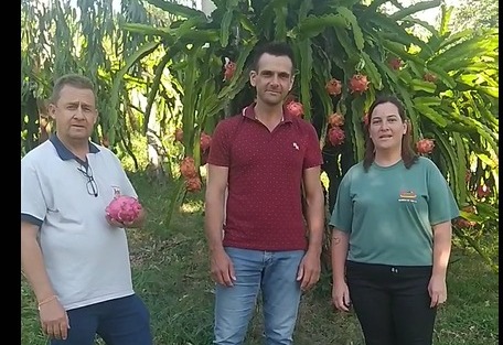 A pitaya, também conhecida como fruta-dragão está cada vez mais popular no Brasil. A fruta com diversas variedades é da família dos cactos e possui uma bela flor que a deixa ainda mais encantadora. Na região do Alto Uruguai, a família Cavalli, de Itatiba do Sul, planta a fruta há sete anos e encontraram nela também uma forma de renda. São poucas as famílias que cultivam a fruta, José Cavalli conta que conheceu a pitaya quando participou de uma feira. “Nessa feira decidi pegar uma muda de pitaya para plantar em casa, com o objetivo de ser usada para consumo familiar”, conta.