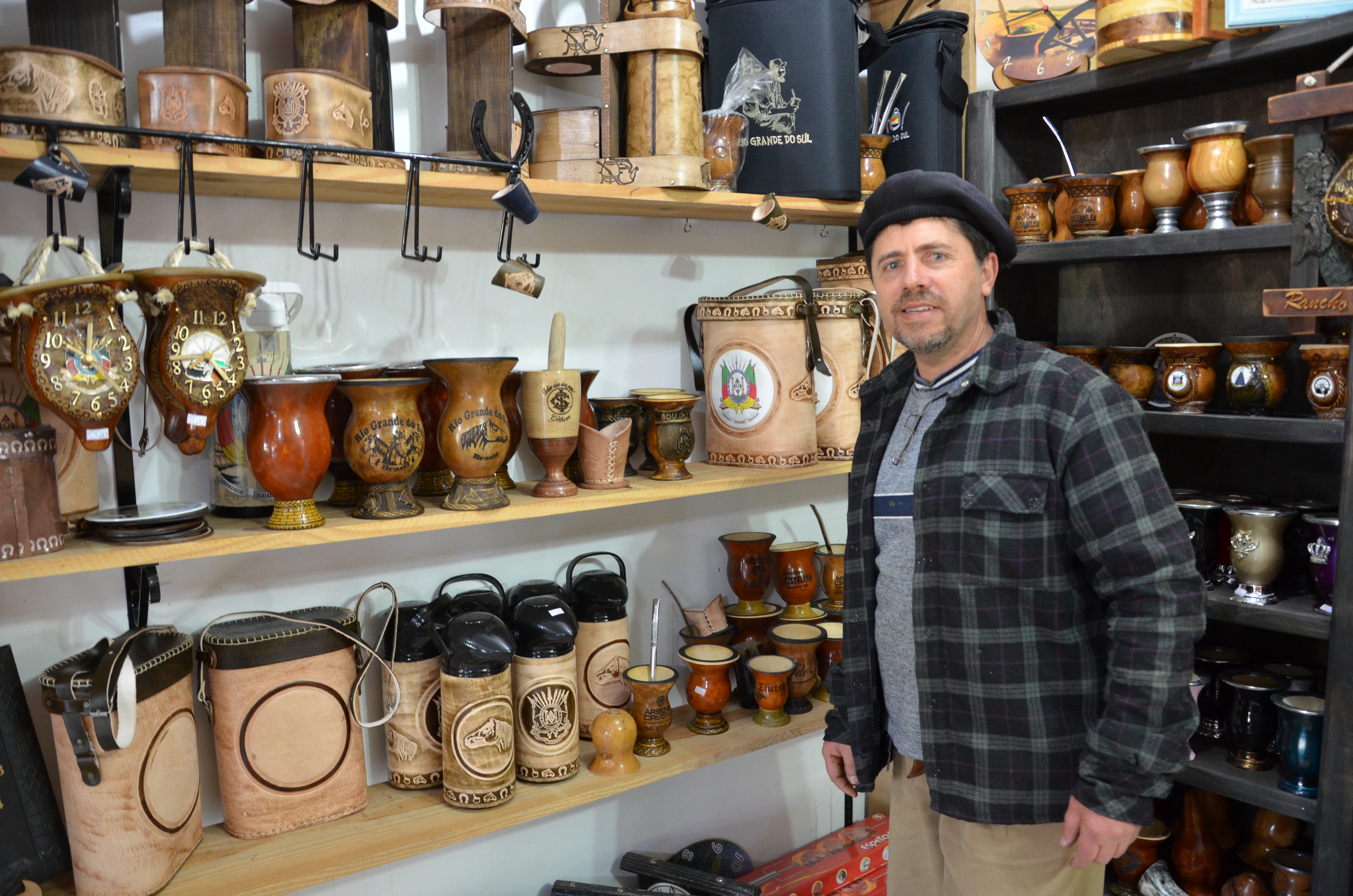 De acordo com o proprietário da loja, Jairo Gagliotto, além de facas, térmicas, bombas os filhos podem procurar artigos como cuias e tabuas para churrasco e relógios personalizados com o nome do pai. “É um trabalho todo especial em que gravamos o nome”, explica.