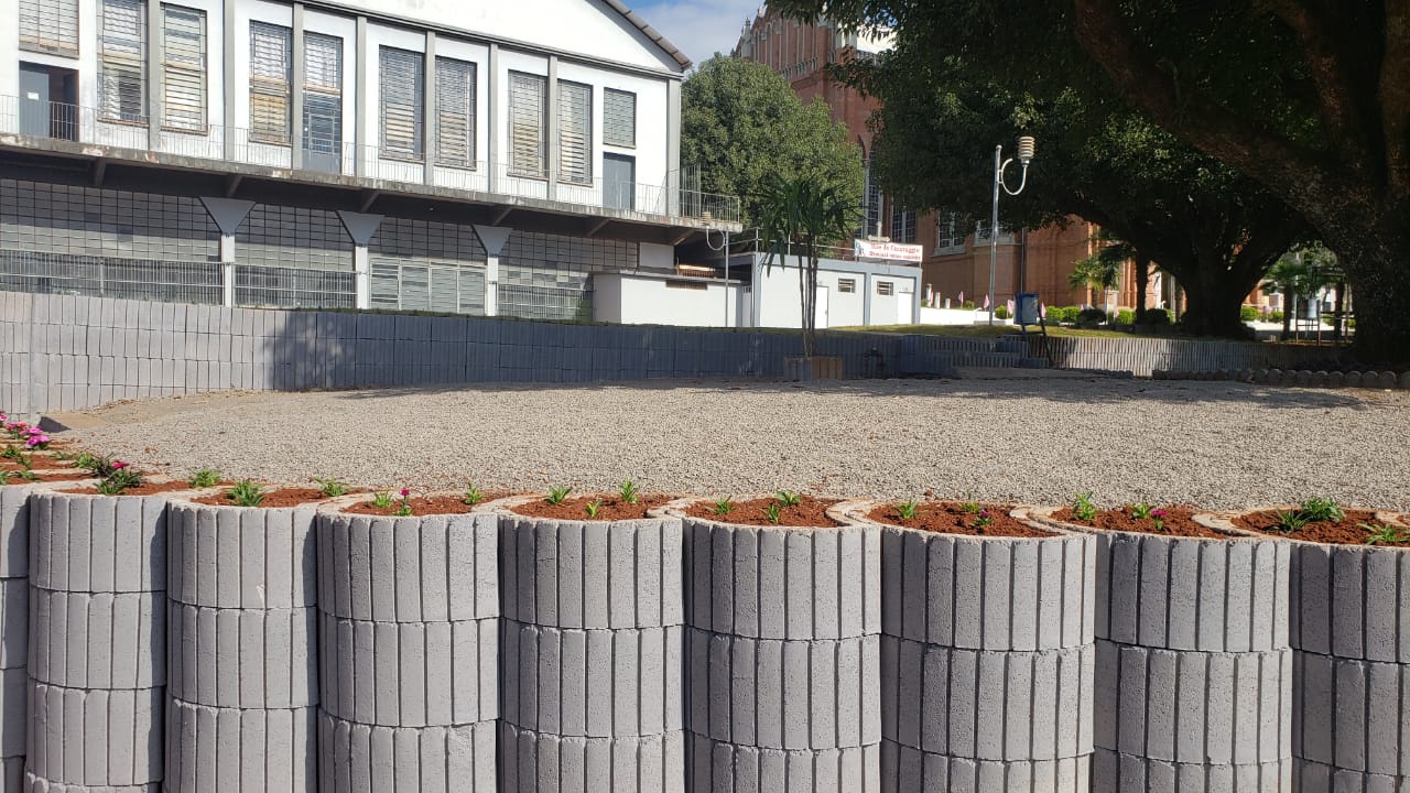 O local agora dispõe de um amplo espaço de lazer, com piso de paver e gramado. Além disso, foram colocados pedriscos na parte inferior do local e realizado o plantio de mudas de flores.