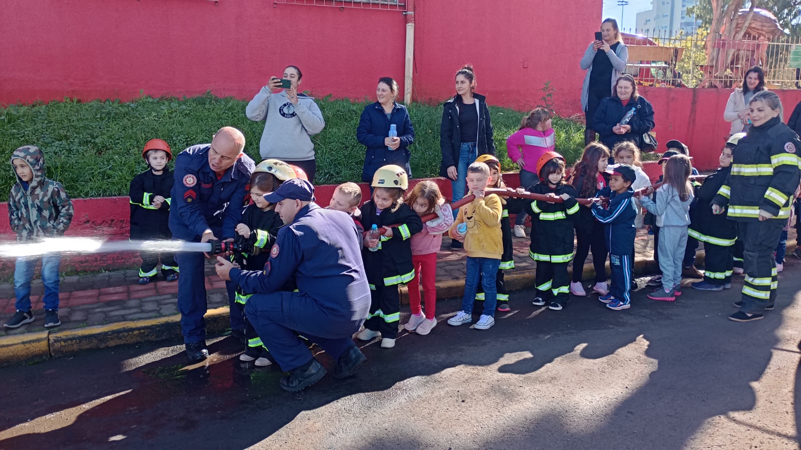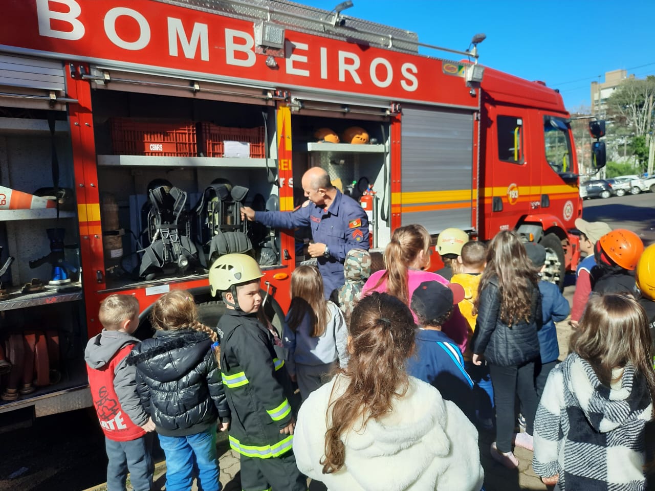 As turmas dos pré A e B, da Escola Municipal de Ensino Fundamental Jubaré, de Barra do Rio Azul, juntamente com as professoras e auxiliares, vice-diretora e responsáveis por algumas das crianças, realizaram uma visita ao Corpo de Bombeiros de Erechim e a academia “Ritmia Saúde e Movimento”.