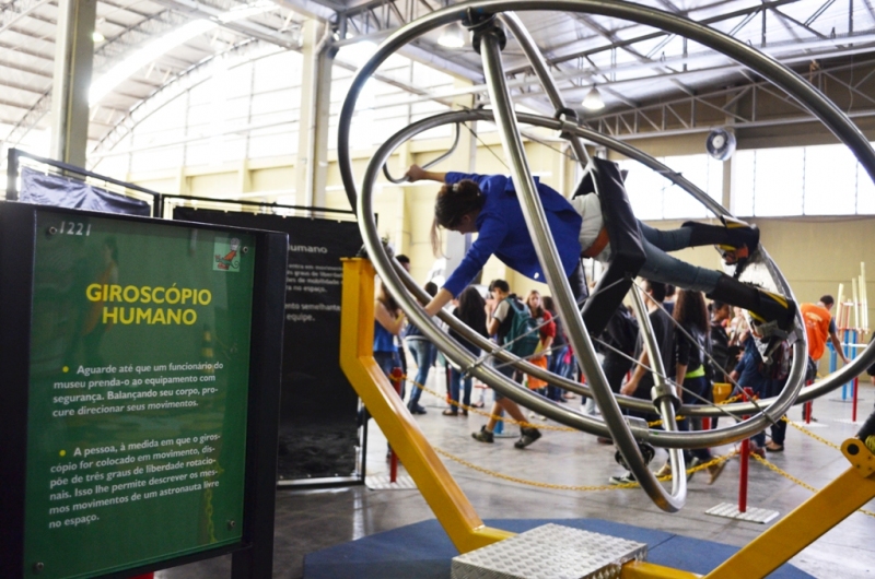 Giroscópio humano: simula os movimentos que um astronauta teria no espaço onde existem três graus de liberdade rotacionais.