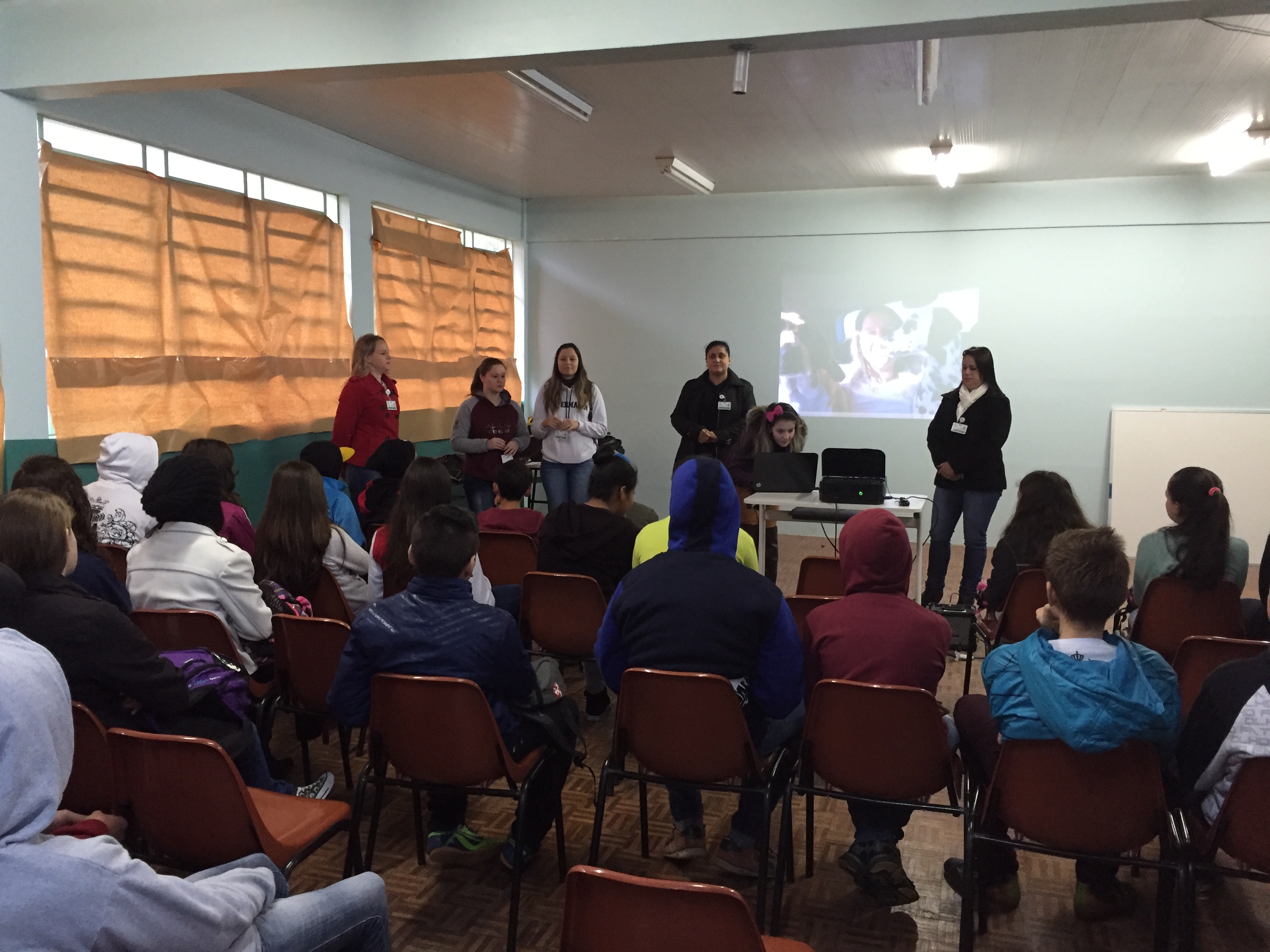 Os alunos do sexto e sétimo ano foram distribuídos em cinco grupos de acordo com ajustes realizados pela própria escola para que todos os adolescentes desta faixa etária pudessem ser beneficiados com as orientações realizadas. A atividade atingiu 103 alunos de 11 a 15 anos.