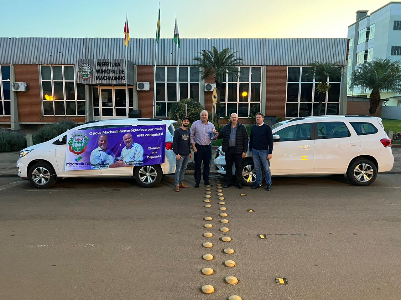 Na última semana, o governo municipal de Machadinho recebeu dois veículos zero quilômetros, via emenda parlamentar e através de investimentos com recursos próprios. Os dois carros Chevrolet Spin, compostas por sete lugares, ficaram expostos em frente ao prédio da prefeitura e a partir de agora passarão a ser utilizados para os serviços de educação e saúde, no transporte de professores e de usuários.