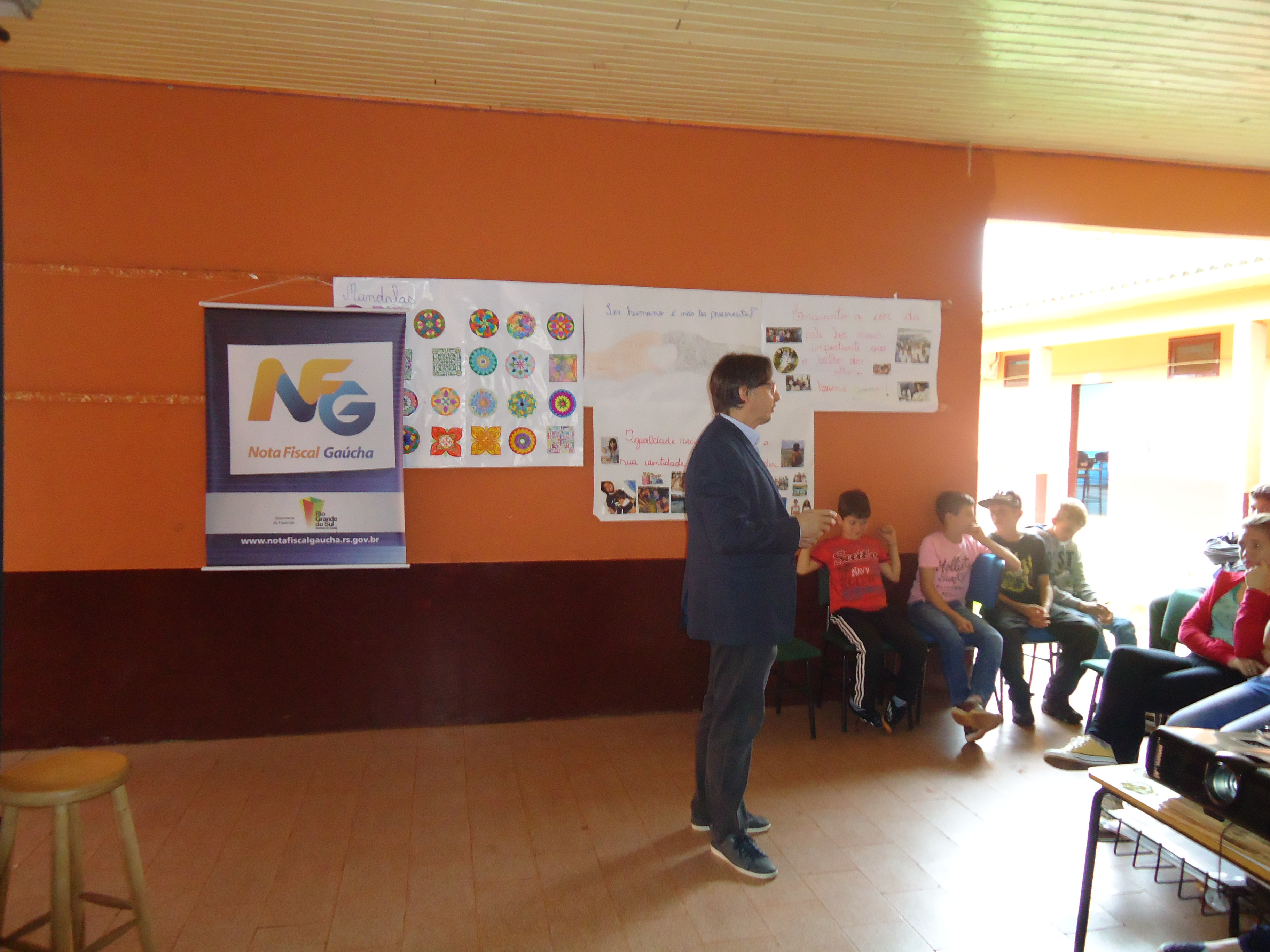 No último dia 17, aconteceu em Ponte Preta, palestra com o tema: “Educação Fiscal e Nota Fiscal Gaúcha”, conduzida pelo delegado da Receita Estadual de Erechim, Amauri José Secco. Estiveram presentes no encontro alunos, professores e comunidade local. O evento aconteceu nas dependências da Escola Estadual de Ensino Médio São José.